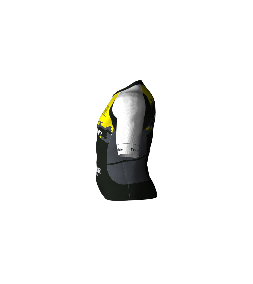 - Elección de tejidos de elasticidad máxima para llevarlo totalmente pegado y evitar así la formación de arrugas o pliegues (a excepción de la pieza central de la espalda, menos elástica en vertical, para evitar el típico "bamboleo" del bolsillo en maillots full 4-way stretch!).