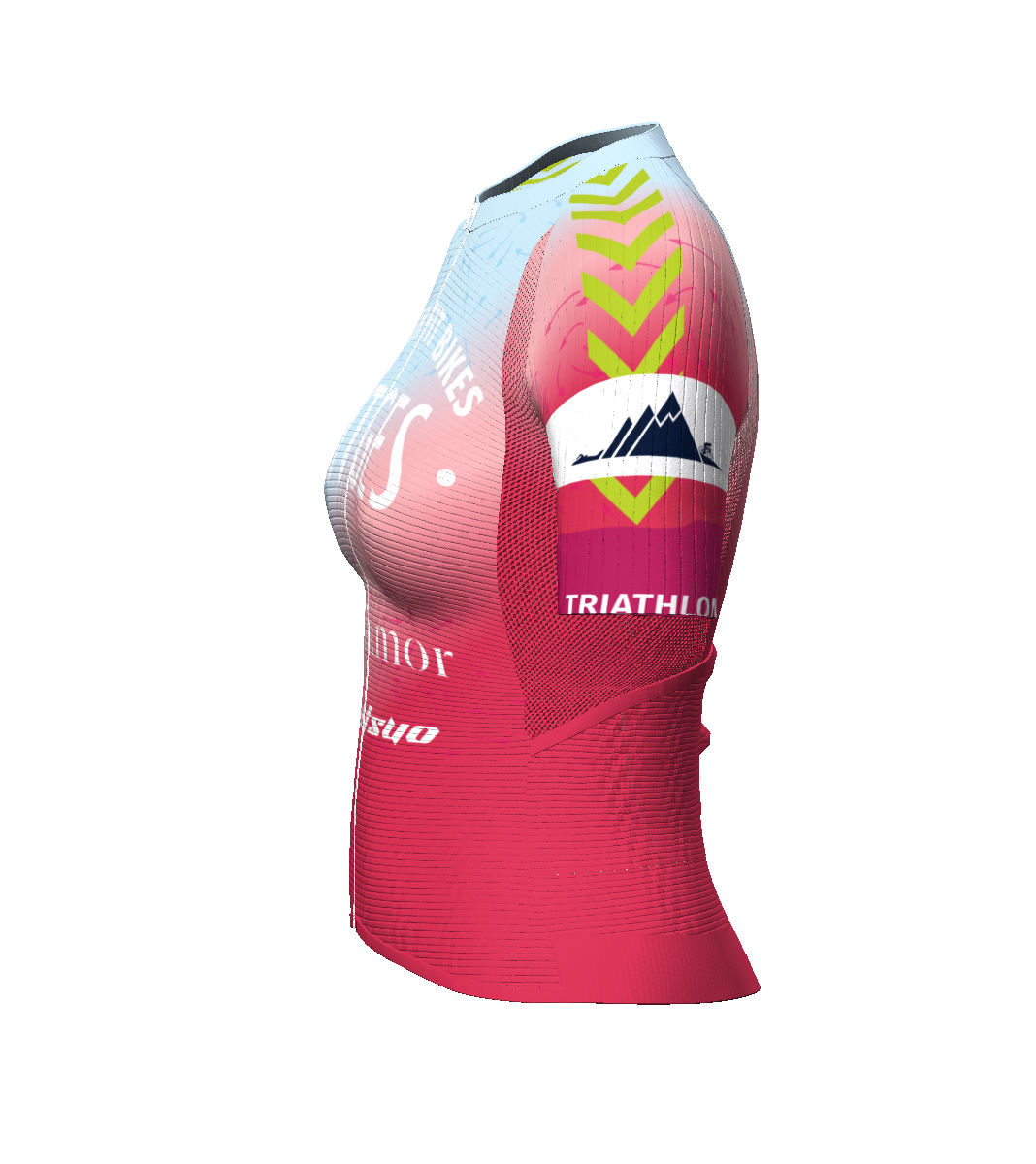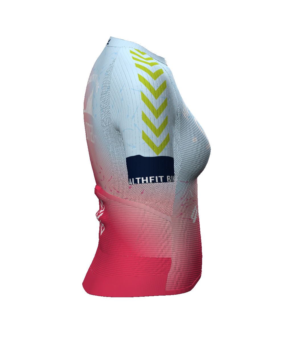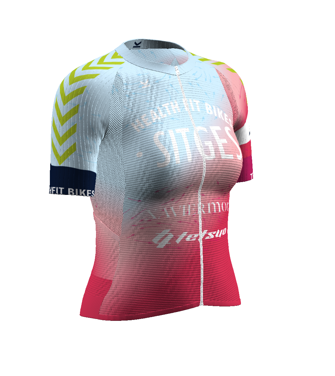 - IBS. Patronaje adaptado a la postura de ciclismo (hombros y escápulas hacia delante). Malla súper elástica bajo hombros/axilas para facilitar los movimientos de los brazos.