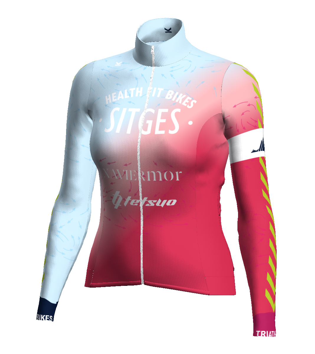- Maillot SLIM-FIT en tejidos de gramaje medio (punto de poliéster en pecho y espalda: transpirabilidad / lycra perchada elástica en mangas y costadillos: fit!). Perfecto para las salidas de entretiempo!.