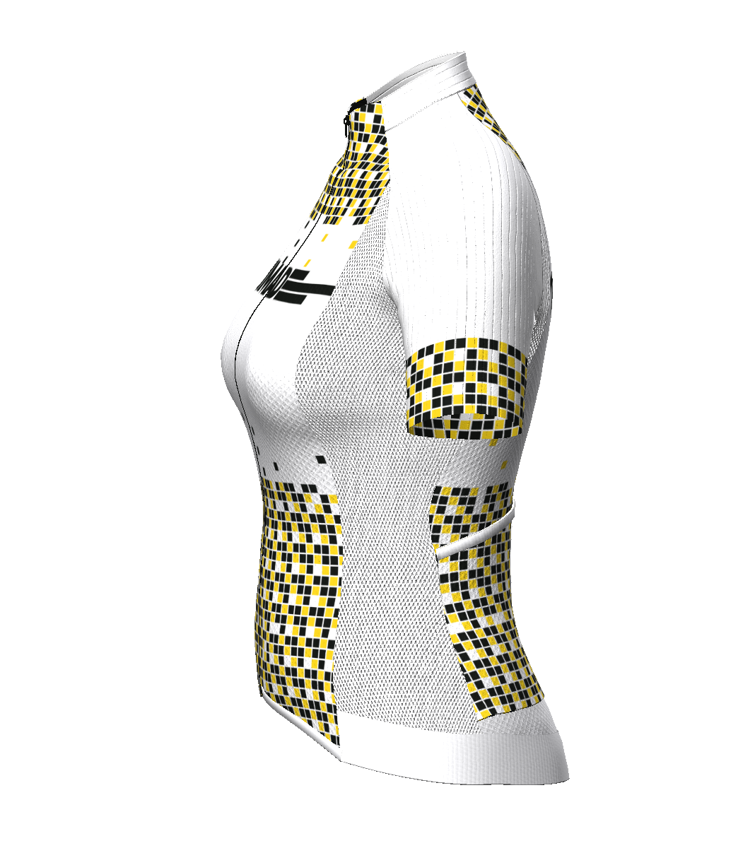 - IBS. Patronaje adaptado a la postura de ciclismo (hombros y escápulas hacia delante). Malla súper elástica bajo hombros/axilas para facilitar los movimientos de los brazos.