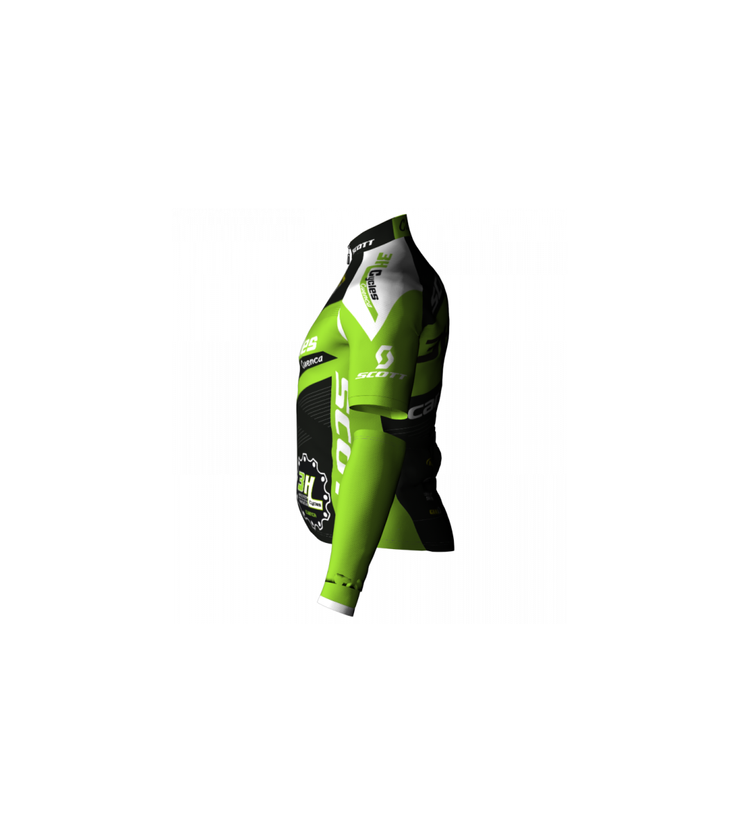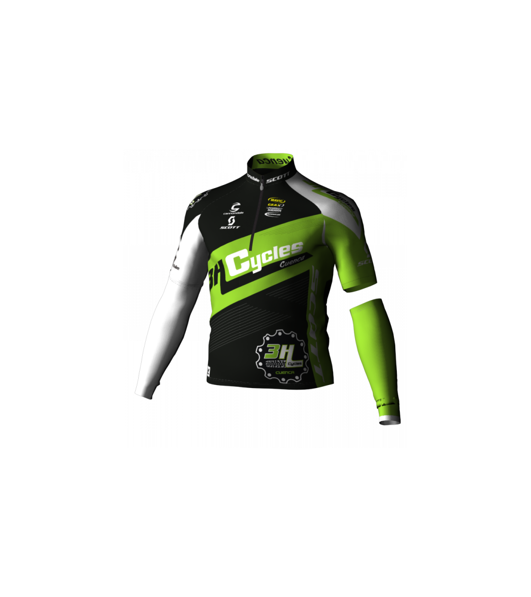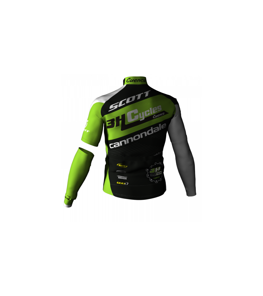 - IBS. Patronaje adaptado a la postura de ciclismo (hombros y escápulas hacia delante). El tejido elástico del delantero se prolonga hacia atrás en zona de sisa y escápulas, para facilitar los movimientos de los brazos.