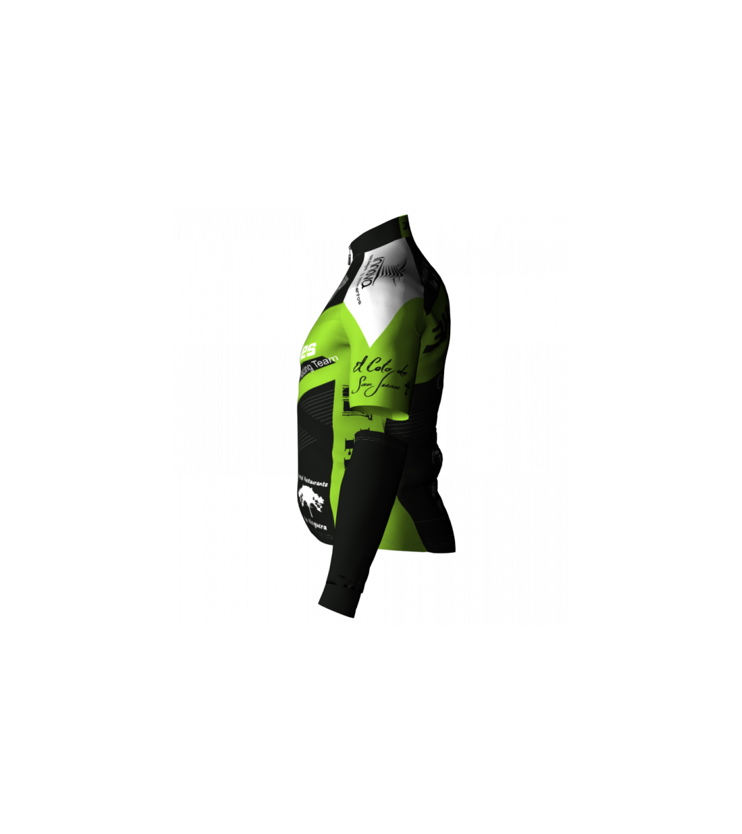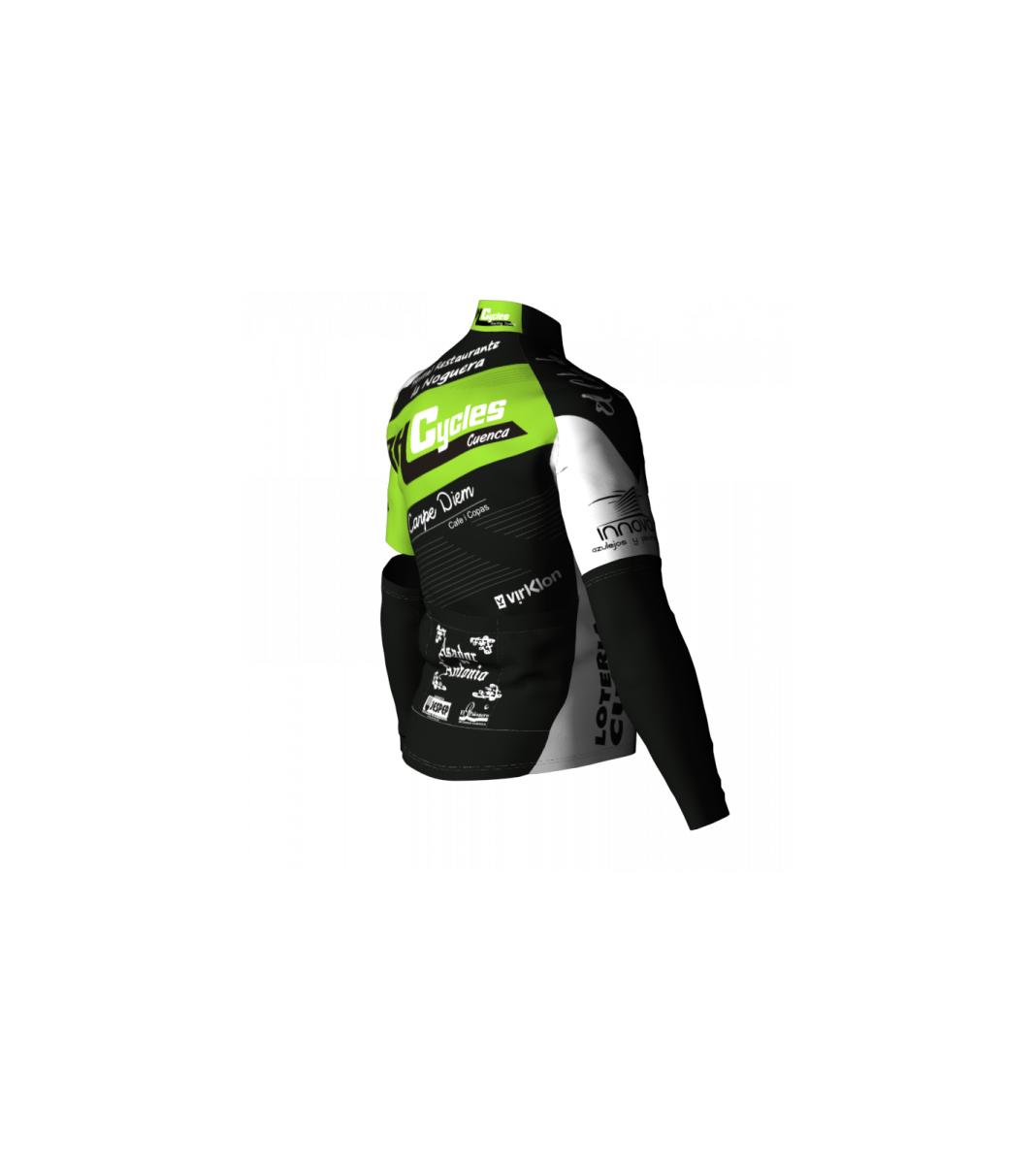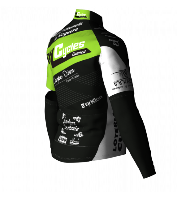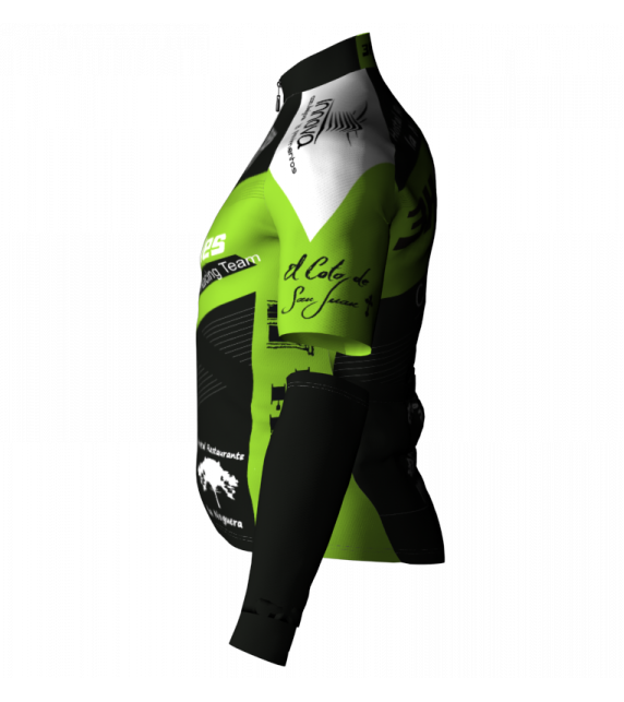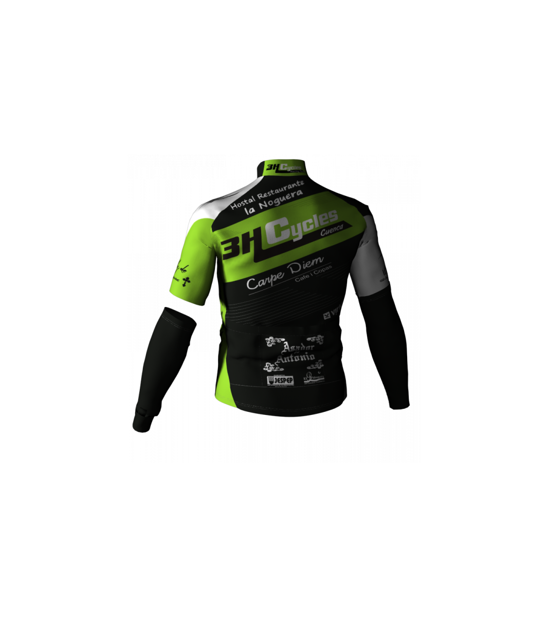 - IBS. Patronaje adaptado a la postura de ciclismo (hombros y escápulas hacia delante). El tejido elástico del delantero se prolonga hacia atrás en zona de sisa y escápulas, para facilitar los movimientos de los brazos.
