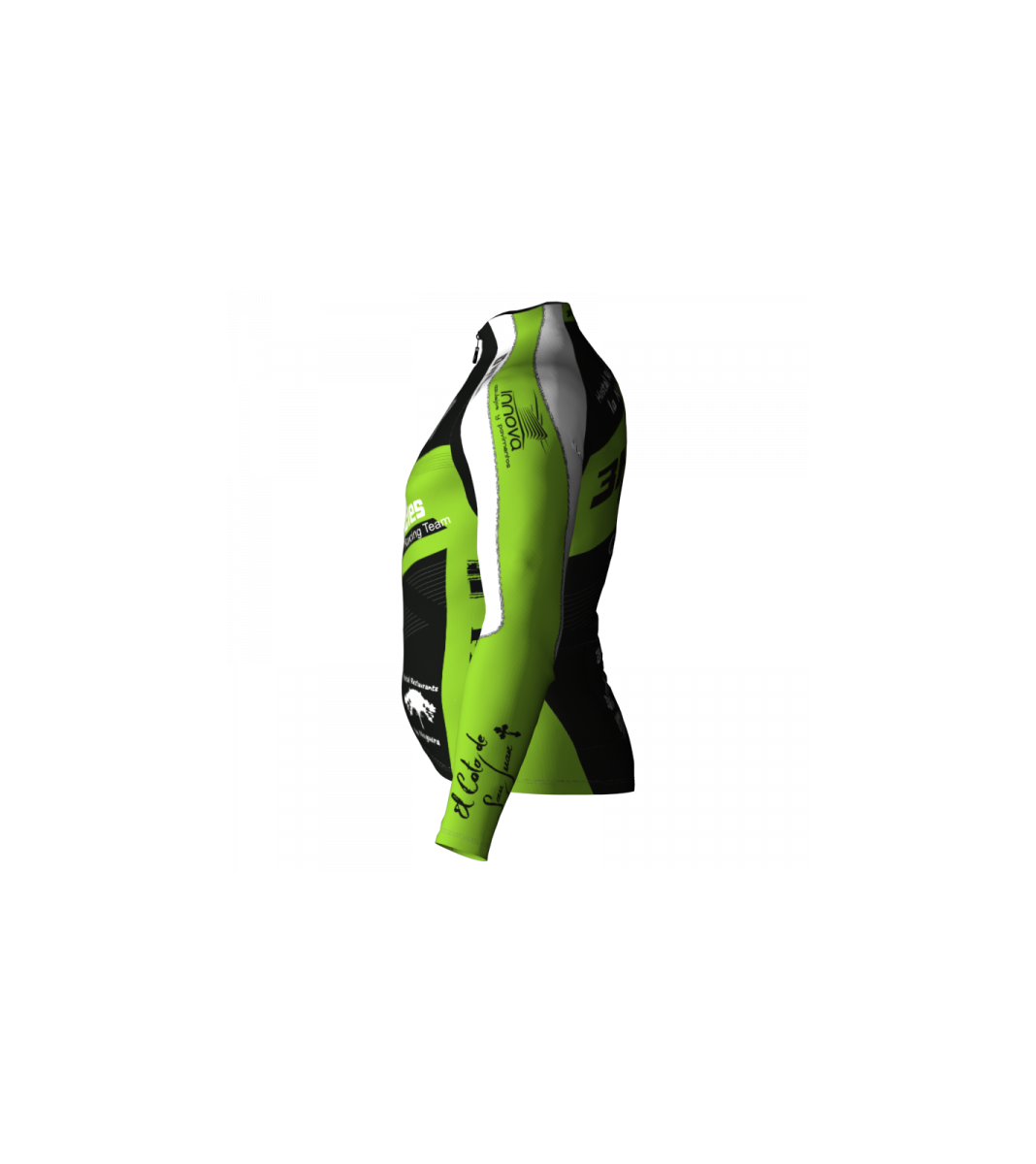 - Maillot SLIM-FIT en tejidos de gramaje medio (punto de poliéster en pecho y espalda: transpirabilidad / lycra perchada elástica en mangas y costadillos: fit!). Perfecto para las salidas de entretiempo!.