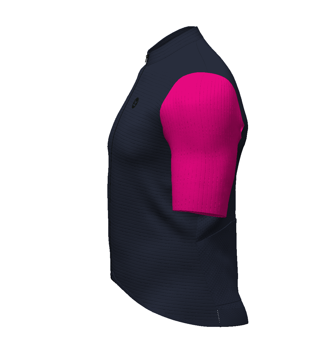 - IBS. Patronaje adaptado a la postura de ciclismo (hombros y escápulas hacia delante). El tejido elástico del delantero se prolonga hacia atrás en zona de sisa y escápulas, para facilitar los movimientos de los brazos.