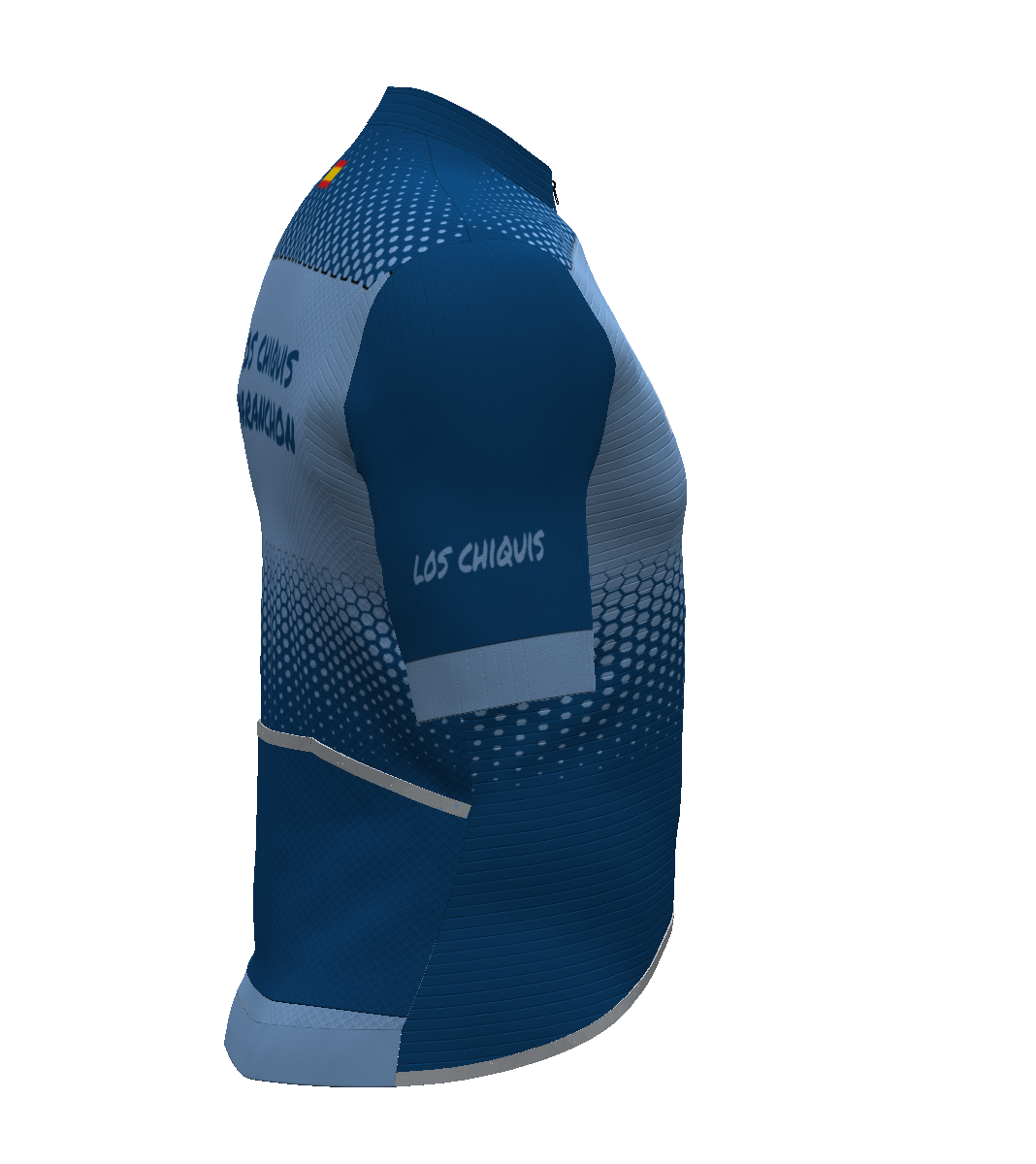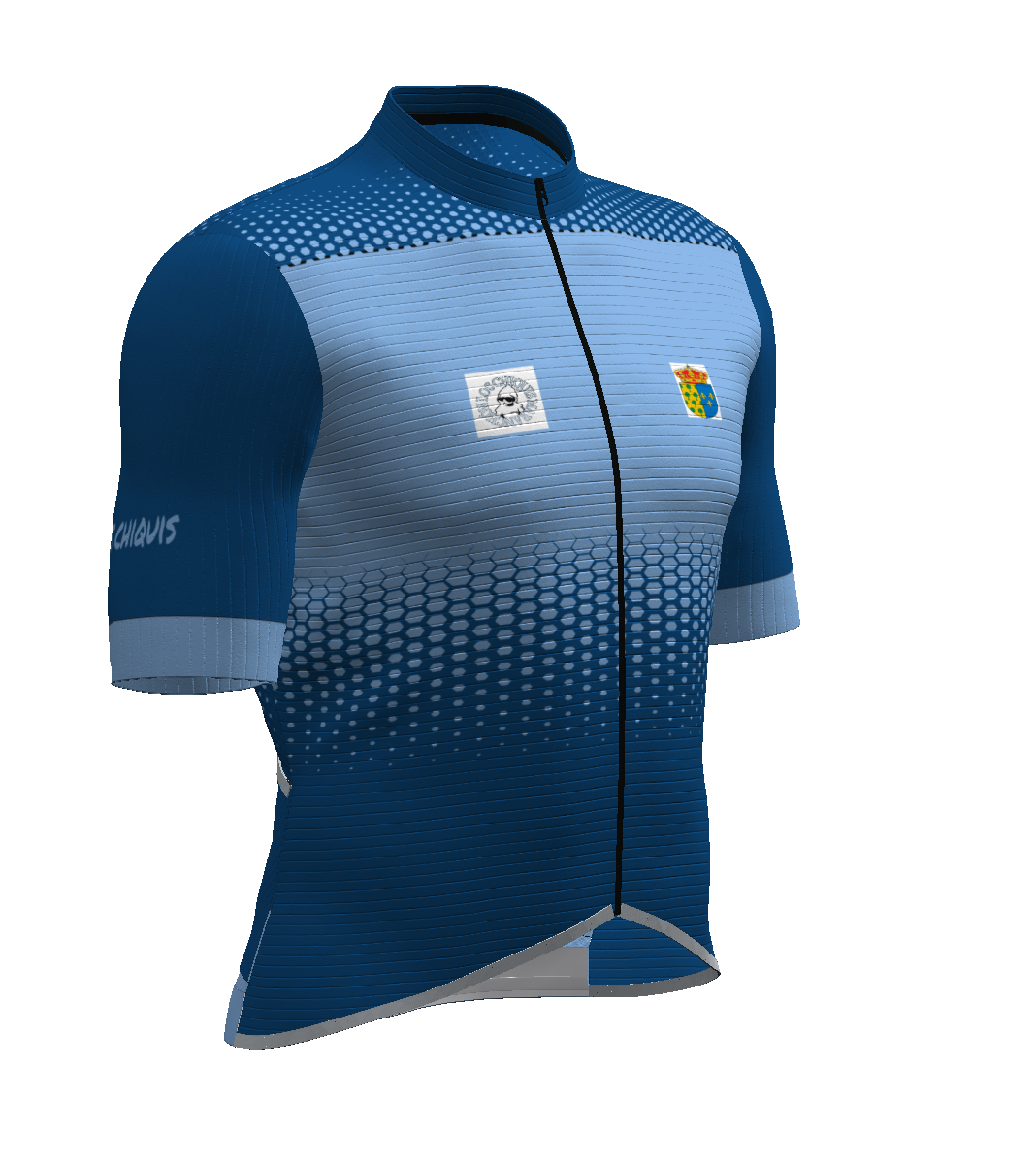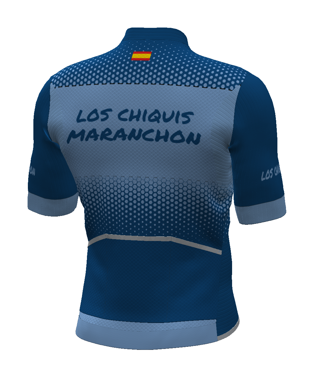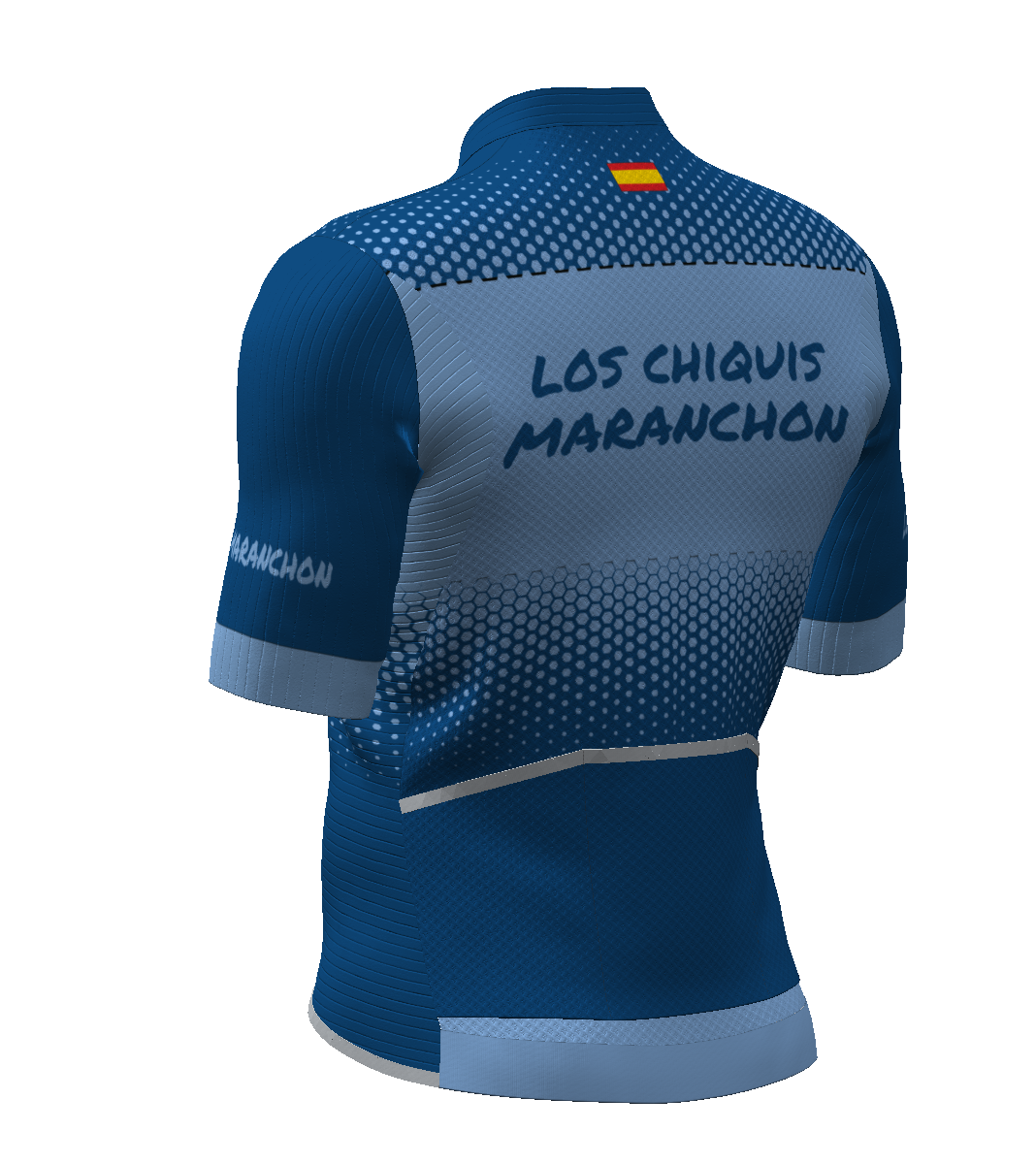 - IBS. Patronaje adaptado a la postura de ciclismo (hombros y escápulas hacia delante). El tejido elástico del delantero se prolonga hacia atrás en zona de sisa y escápulas, para facilitar los movimientos de los brazos.