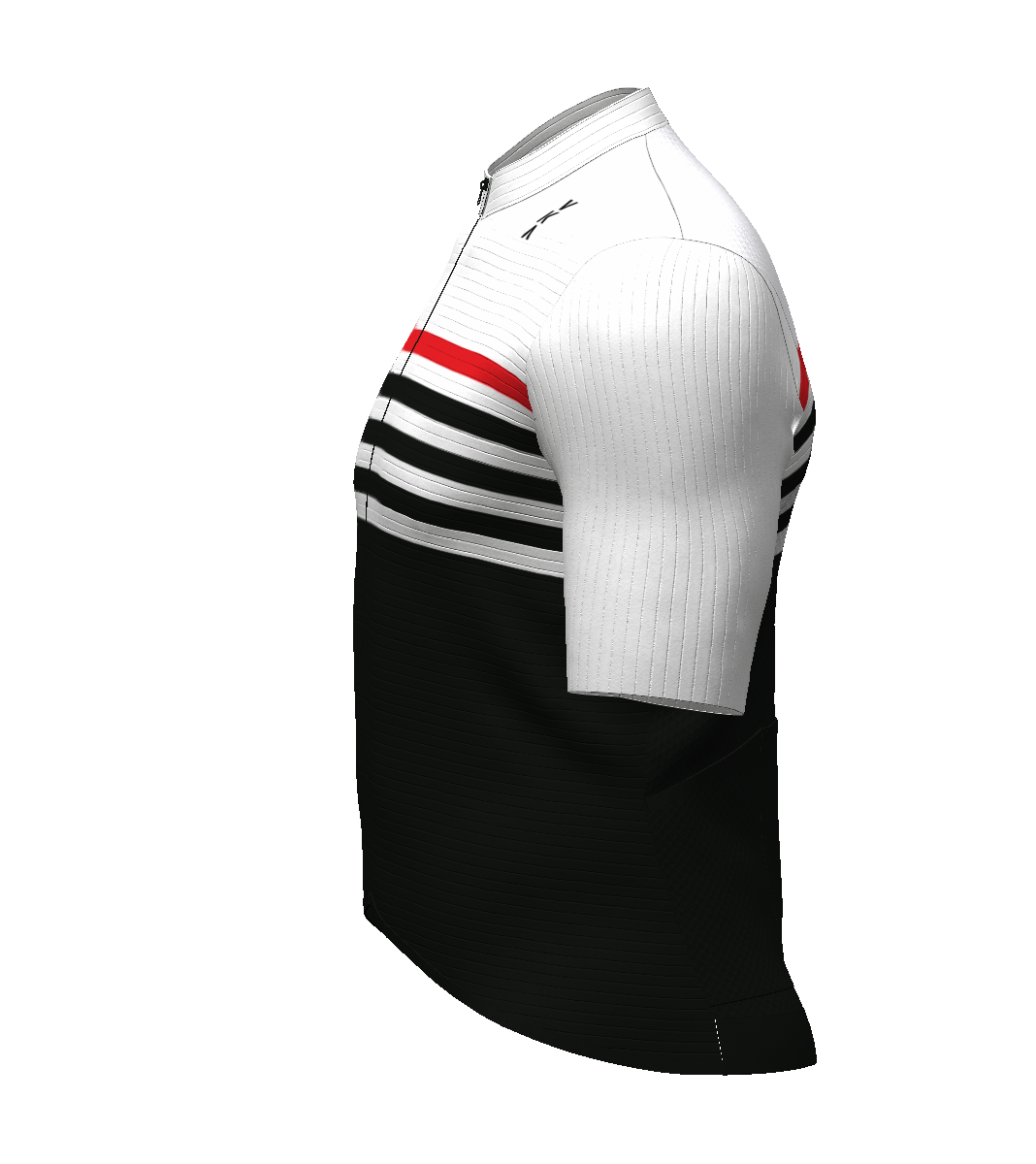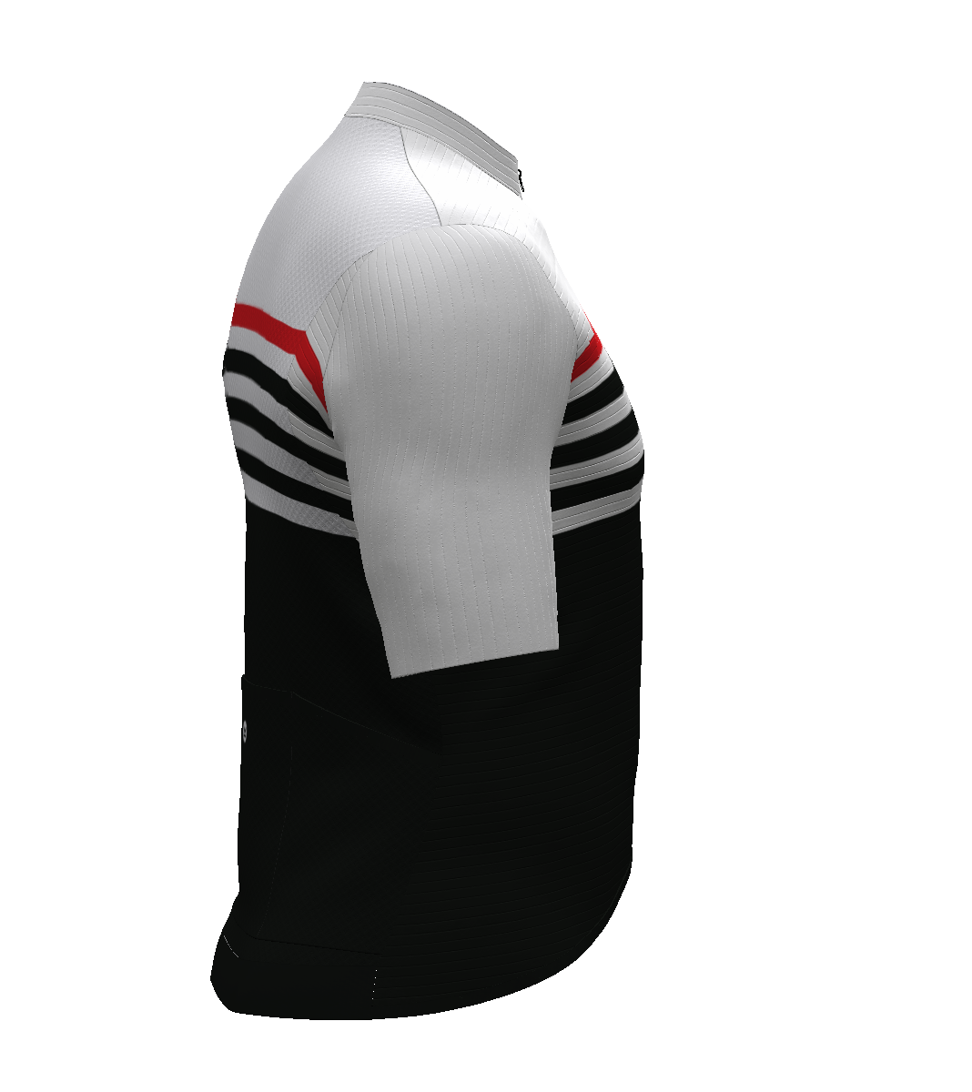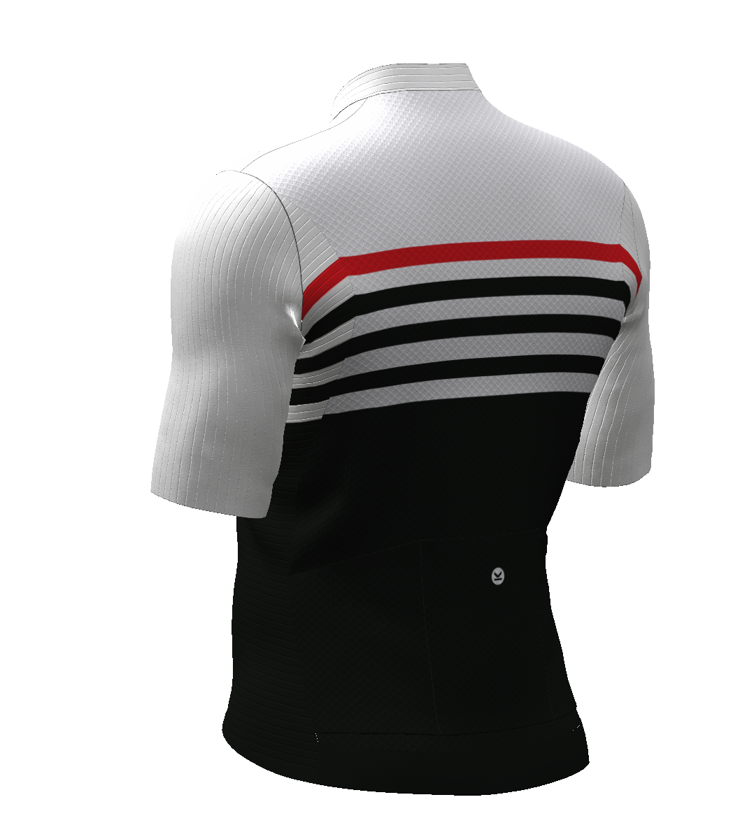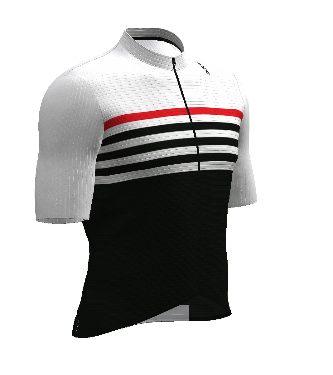 - IBS. Patronaje adaptado a la postura de ciclismo (hombros y escápulas hacia delante). El tejido elástico del delantero se prolonga hacia atrás en zona de sisa y escápulas, para facilitar los movimientos de los brazos.