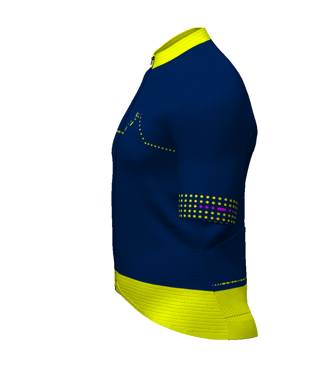 - IBS. Patronaje adaptado a la postura de ciclismo (hombros y escápulas hacia delante). El tejido elástico del delantero se prolonga hacia atrás en zona de sisa y escápulas, para facilitar los movimientos de los brazos.