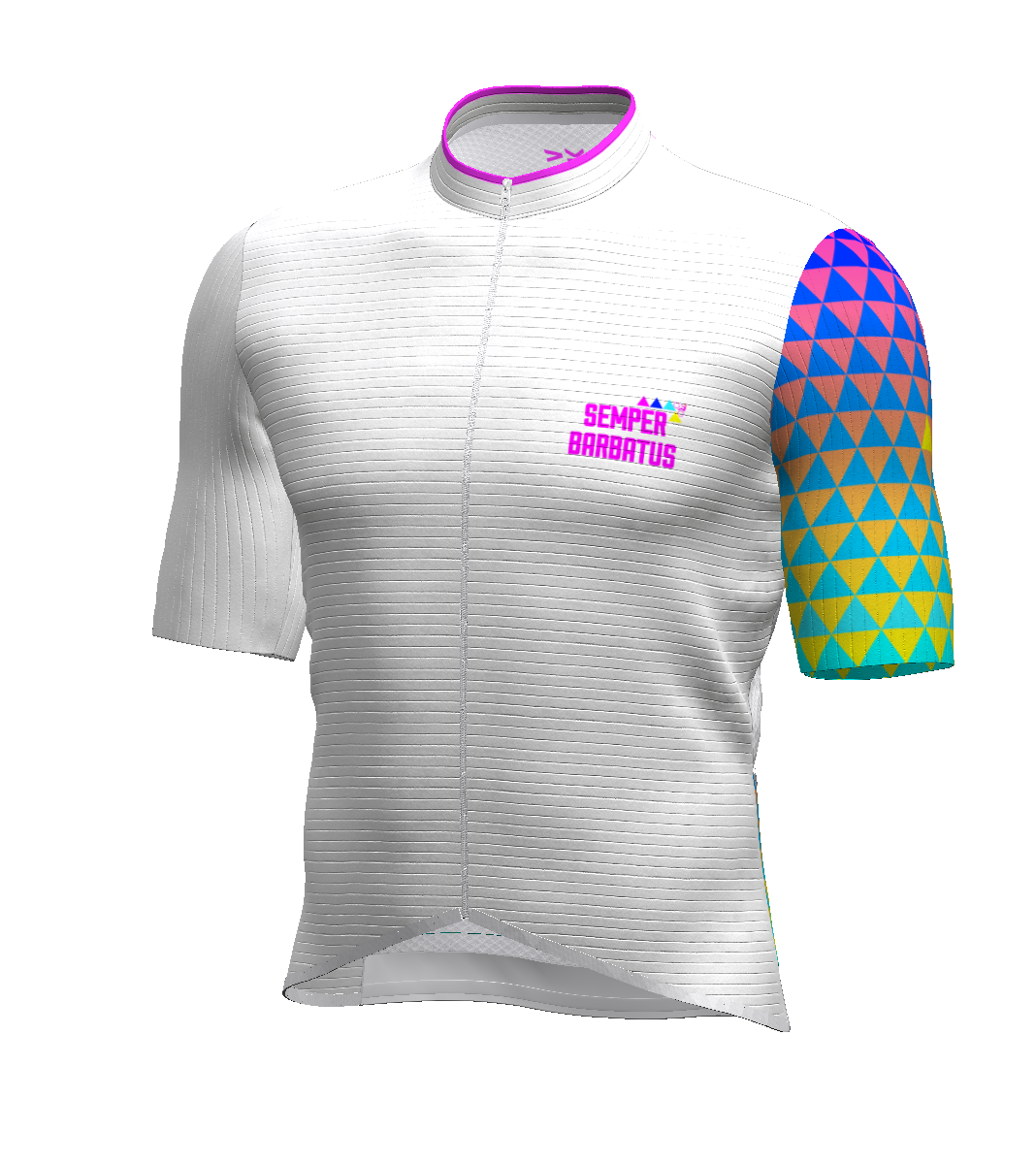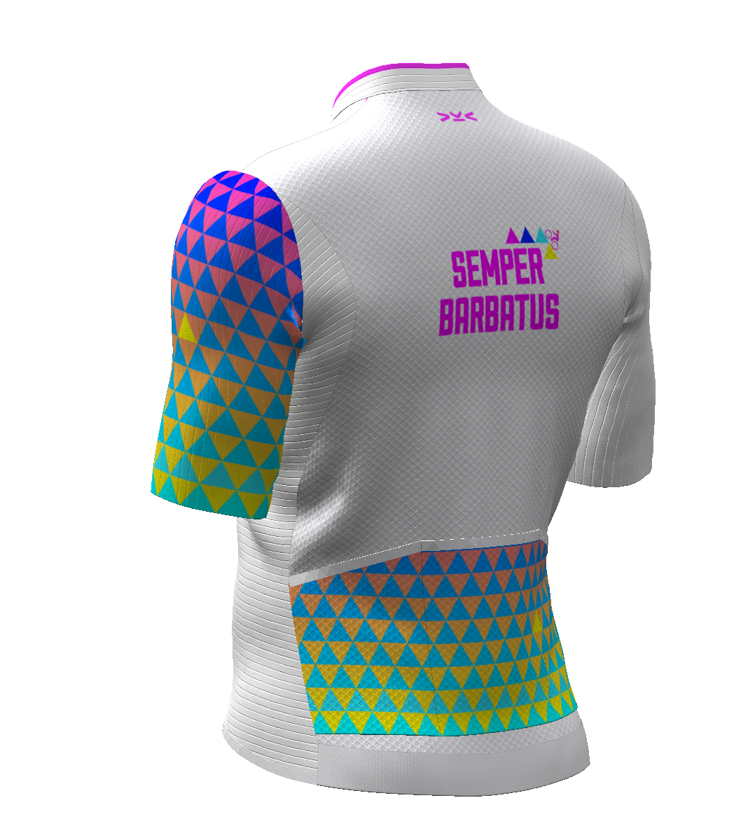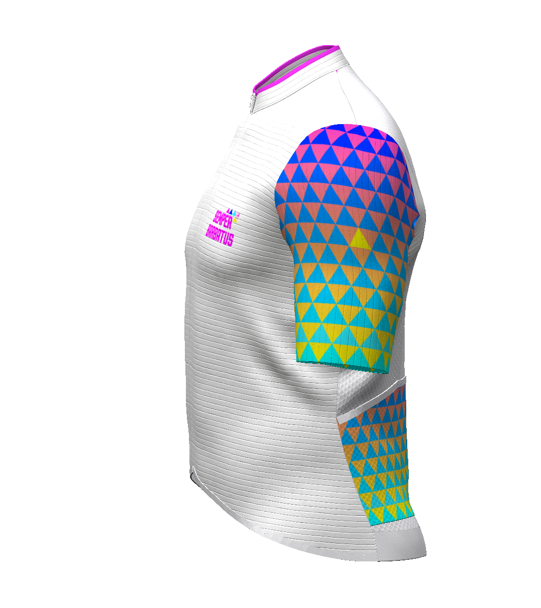 - IBS. Patronaje adaptado a la postura de ciclismo (hombros y escápulas hacia delante). El tejido elástico del delantero se prolonga hacia atrás en zona de sisa y escápulas, para facilitar los movimientos de los brazos.