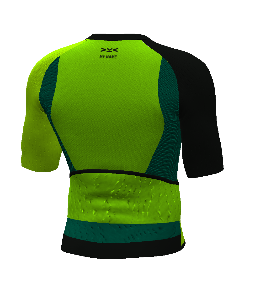 - IBS. Patronaje adaptado a la postura de ciclismo (hombros y escápulas hacia delante). Malla súper elástica bajo hombros/axilas para facilitar los movimientos de los brazos.