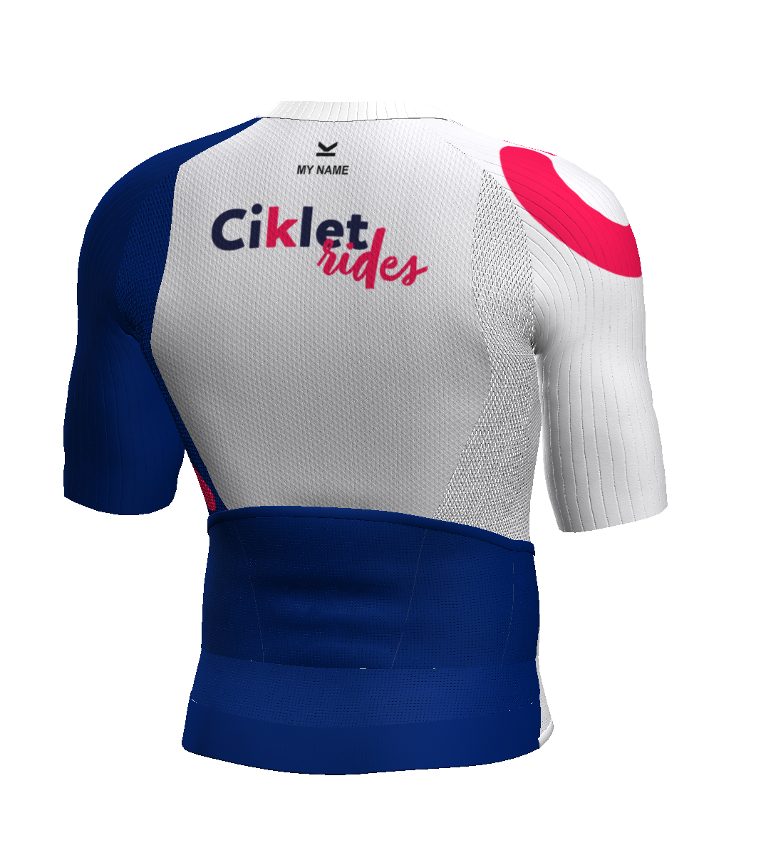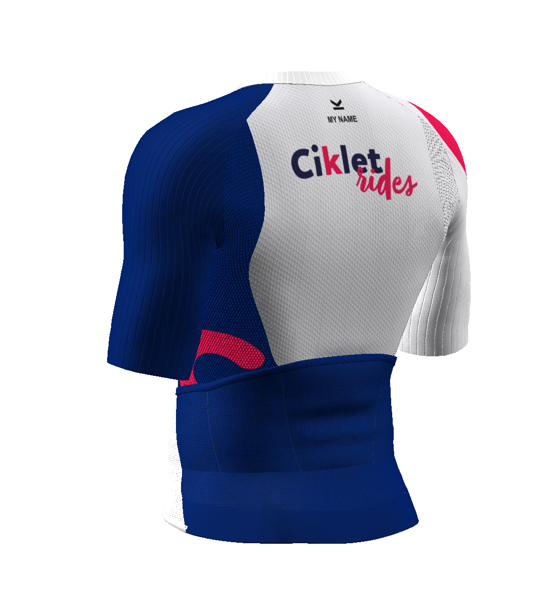 - IBS. Patronaje adaptado a la postura de ciclismo (hombros y escápulas hacia delante). Malla súper elástica bajo hombros/axilas para facilitar los movimientos de los brazos.