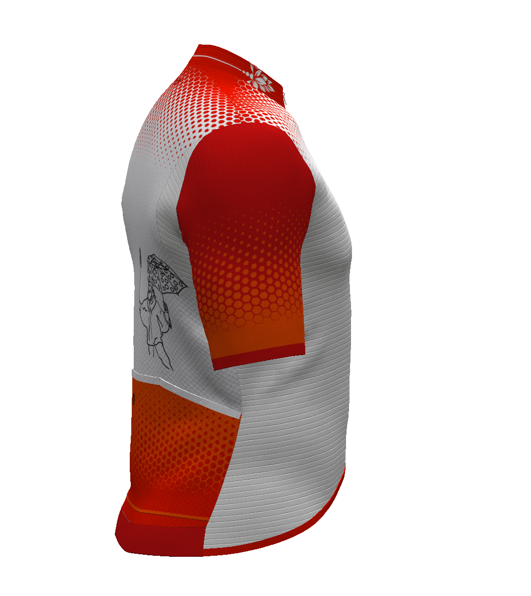 - IBS. Patronaje adaptado a la postura de ciclismo (hombros y escápulas hacia delante). El tejido elástico del delantero se prolonga hacia atrás en zona de sisa y escápulas, para facilitar los movimientos de los brazos.