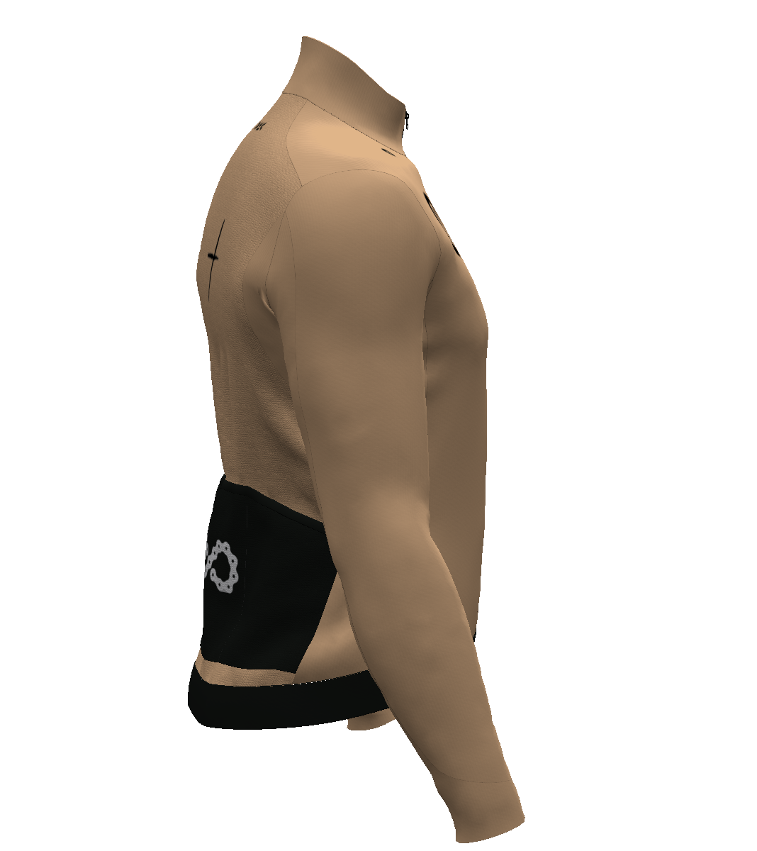 - Frontales en tejido laminado con membrana PU (Fox LIGHT Airtek 83), traseras brazo y costados en lycra perchada de alta elasticidad (KIMBO), y espalda en punto perchado (DRUIDA).