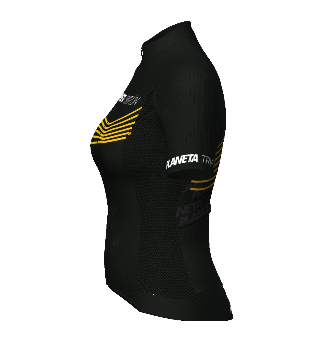 - IBS. Patronaje adaptado a la postura de ciclismo (hombros y escápulas hacia delante). Malla súper elástica bajo hombros/axilas para facilitar los movimientos de los brazos.