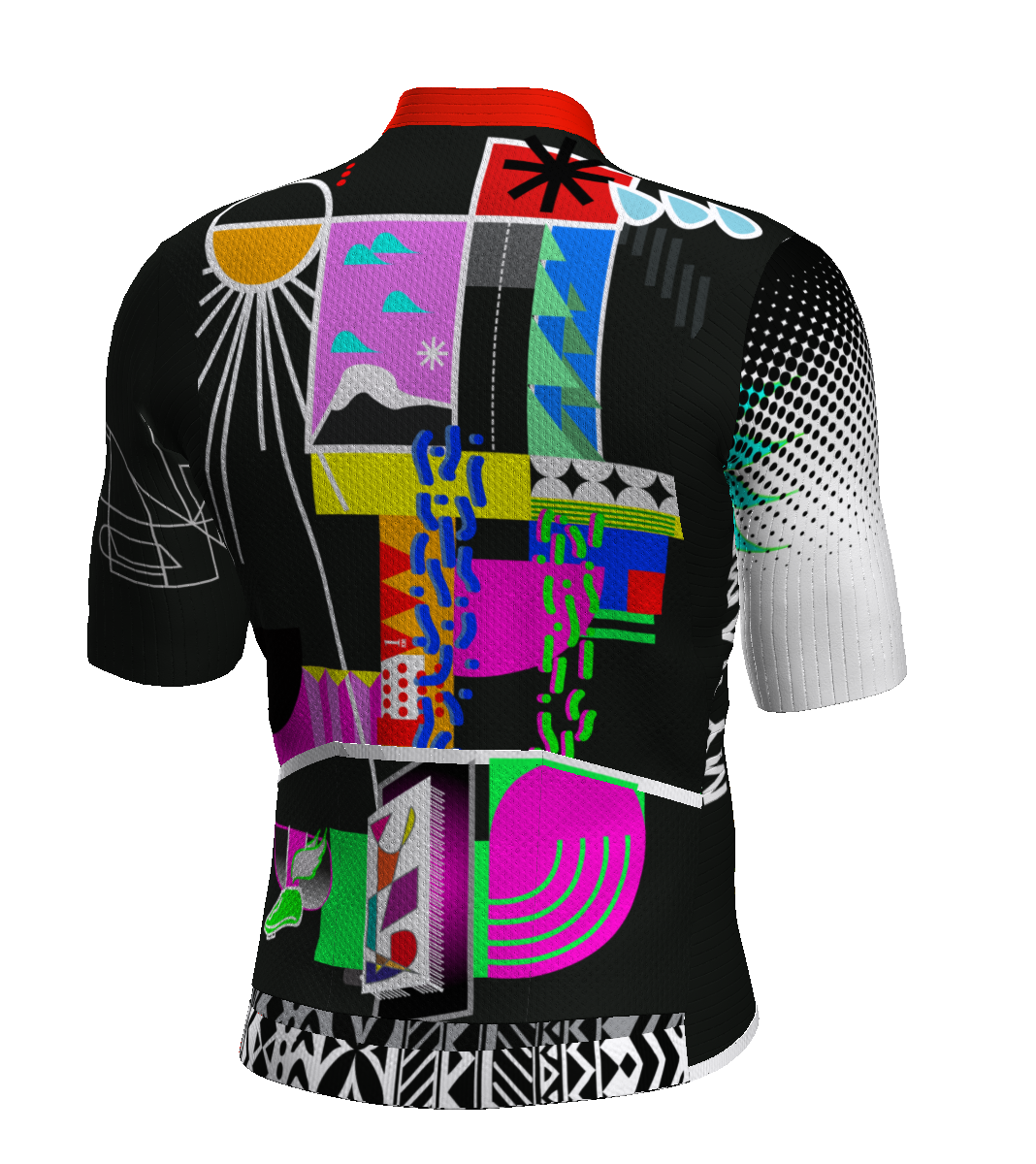 - IBS. Patronaje adaptado a la postura de ciclismo (hombros y escápulas hacia delante). El tejido elástico del delantero se prolonga hacia atrás en zona de sisa y escápulas, para facilitar los movimientos de los brazos.