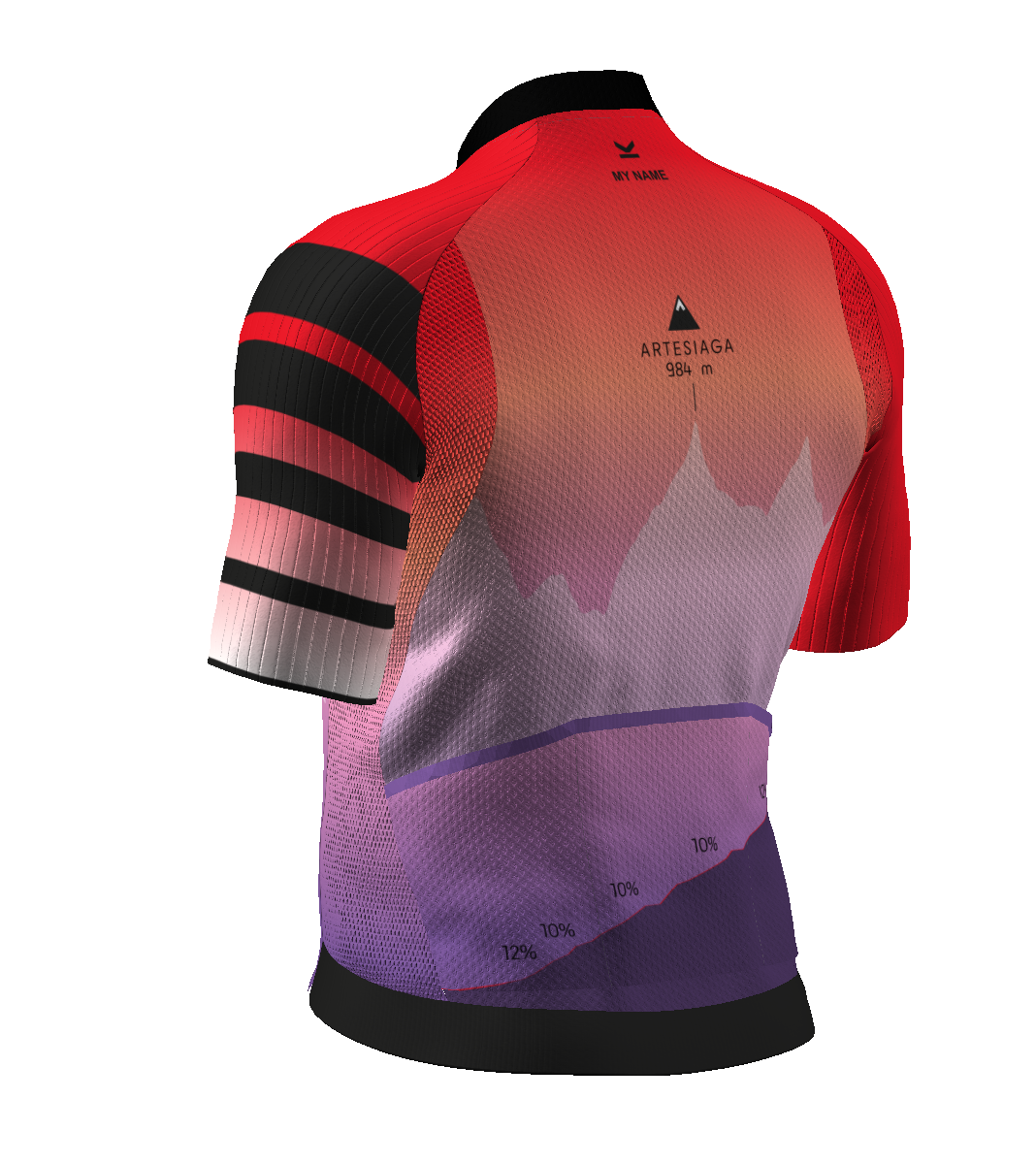 - IBS. Patronaje adaptado a la postura de ciclismo (hombros y escápulas hacia delante). Malla súper elástica bajo hombros/axilas para facilitar los movimientos de los brazos.