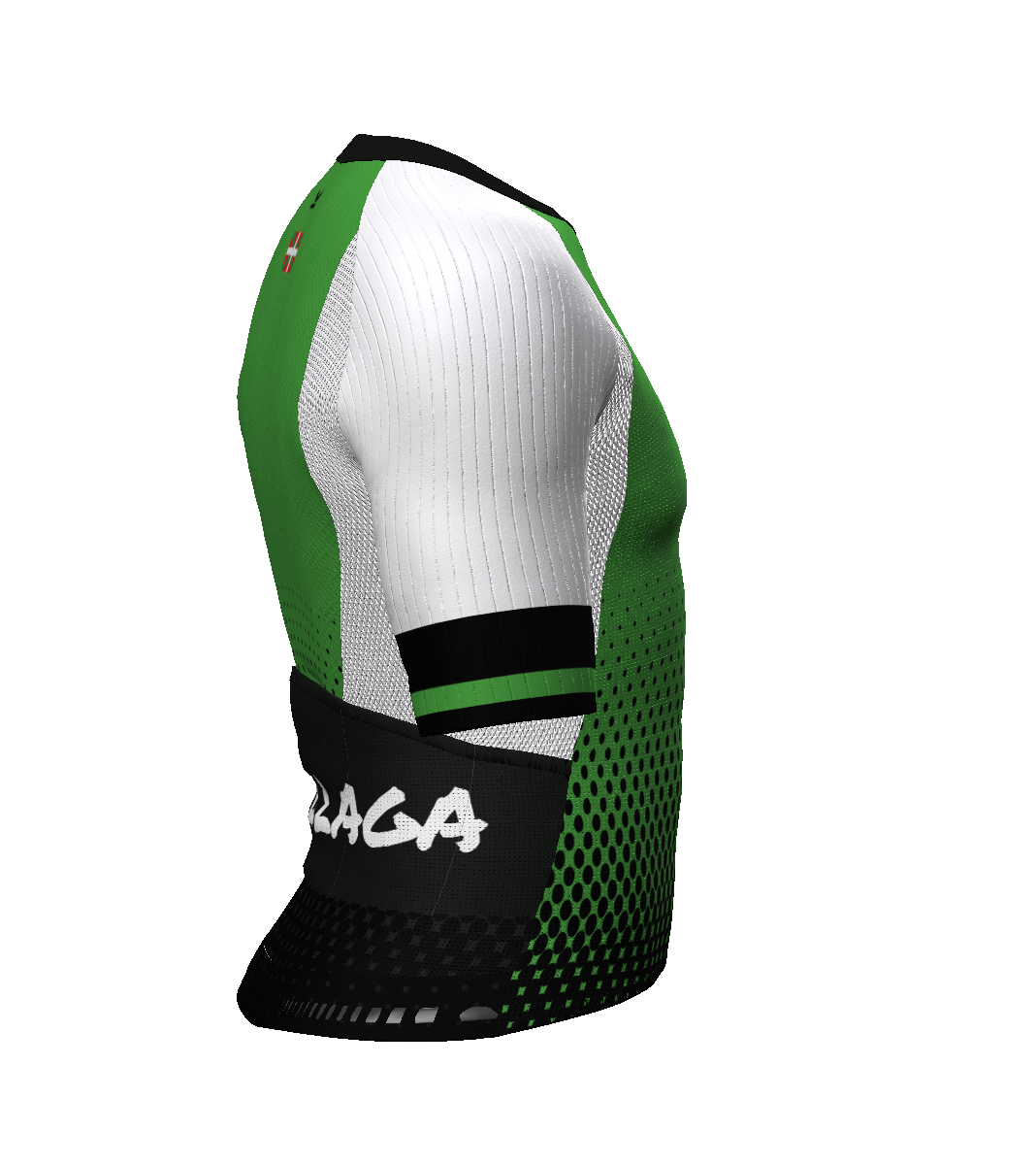 - IBS. Patronaje adaptado a la postura de ciclismo (hombros y escápulas hacia delante). Malla súper elástica bajo hombros/axilas para facilitar los movimientos de los brazos.