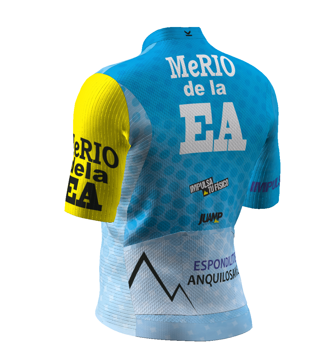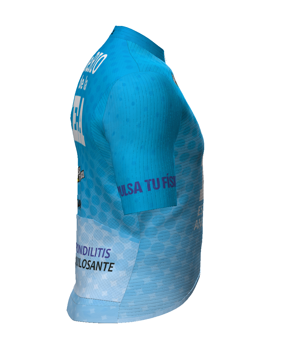 - IBS. Patronaje adaptado a la postura de ciclismo (hombros y escápulas hacia delante). El tejido elástico del delantero se prolonga hacia atrás en zona de sisa y escápulas, para facilitar los movimientos de los brazos.