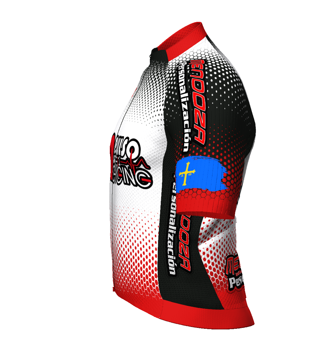 - IBS. Patronaje adaptado a la postura de ciclismo (hombros y escápulas hacia delante). Malla súper elástica bajo hombros/axilas para facilitar los movimientos de los brazos.