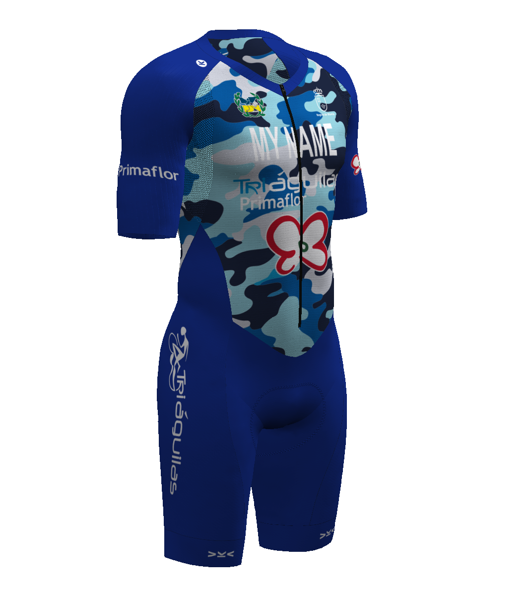 - Patronaje adaptado a los movimientos del pedaleo y carrera a pie gracias a una acentuada precurva en la zona de unión entre pierna y glúteo.