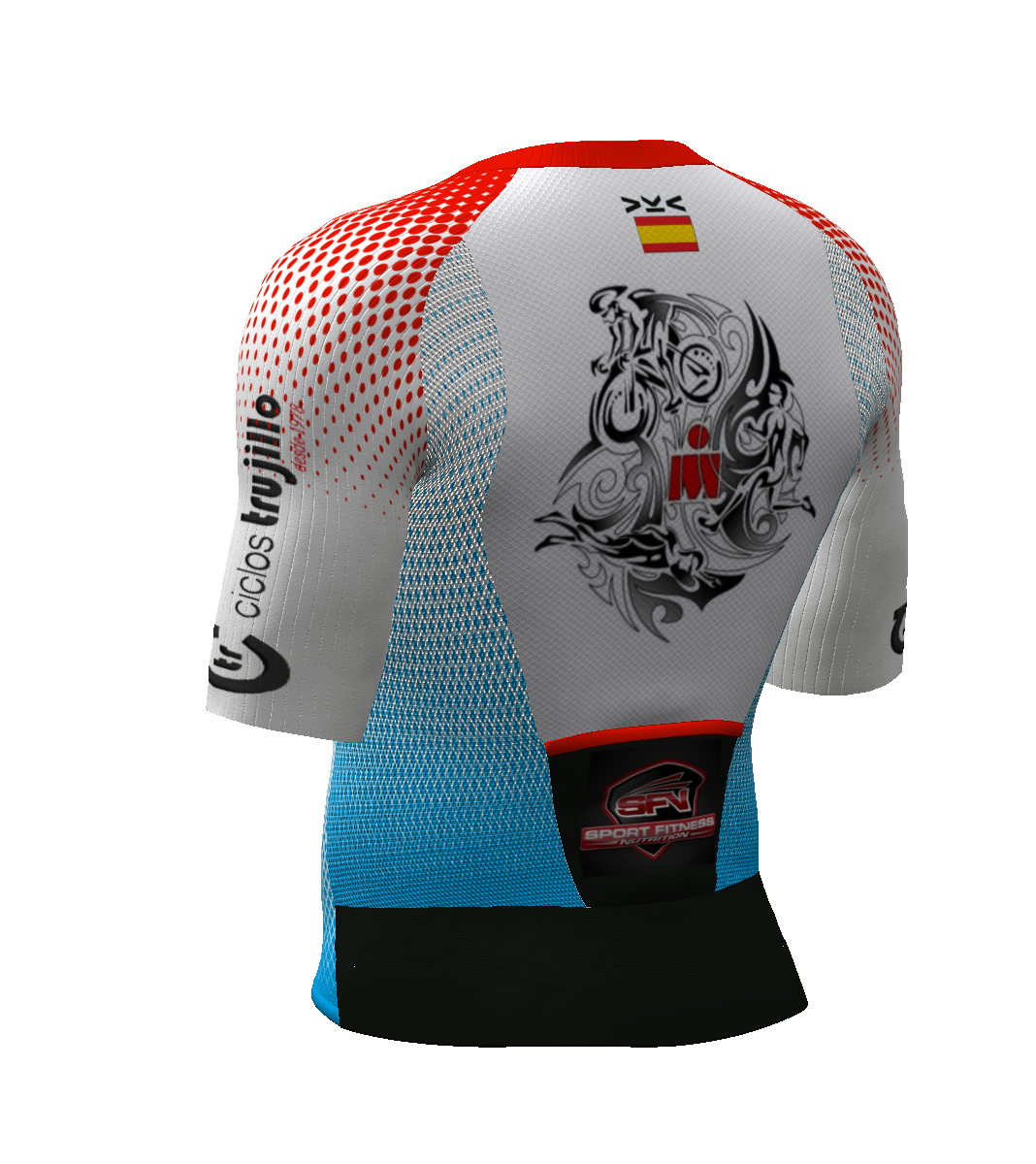 - IRS. Espalda rediseñada y "acortada" para favorecer el anclaje y posición del IRS, por lo que recomendamos usarlo junto con alguna prendas inferior IRS. Unido al short tendrás la sensación de estar usando un mono ligero y super transpirable!!