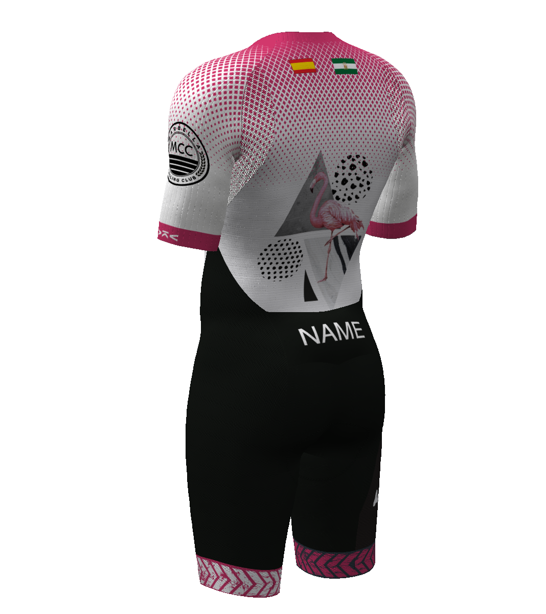 - Patronaje adaptado a los movimientos del pedaleo y carrera a pie gracias a una acentuada precurva en la zona de unión entre pierna y glúteo.