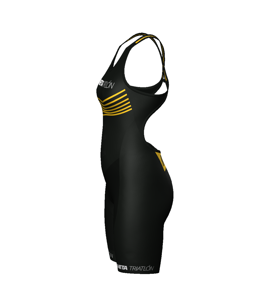 - Tejidos de alta calidad y badana minimalista, hacen de este mono la elección perfecta para las triatletas amantes de las distancias cortas.
