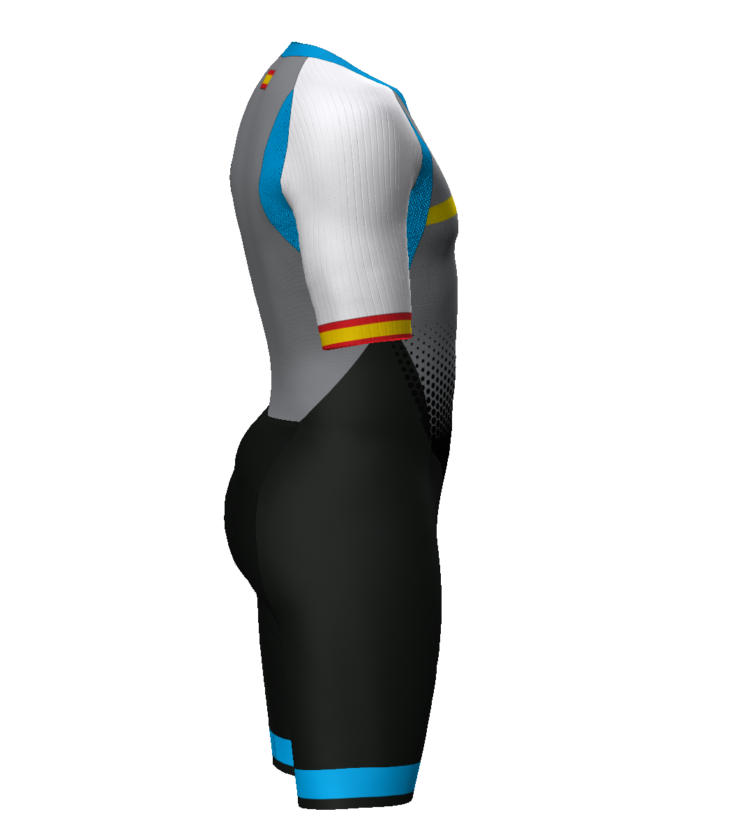 - Patronaje adaptado a los movimientos del pedaleo y carrera a pie gracias a una acentuada precurva en la zona de unión entre pierna y glúteo.