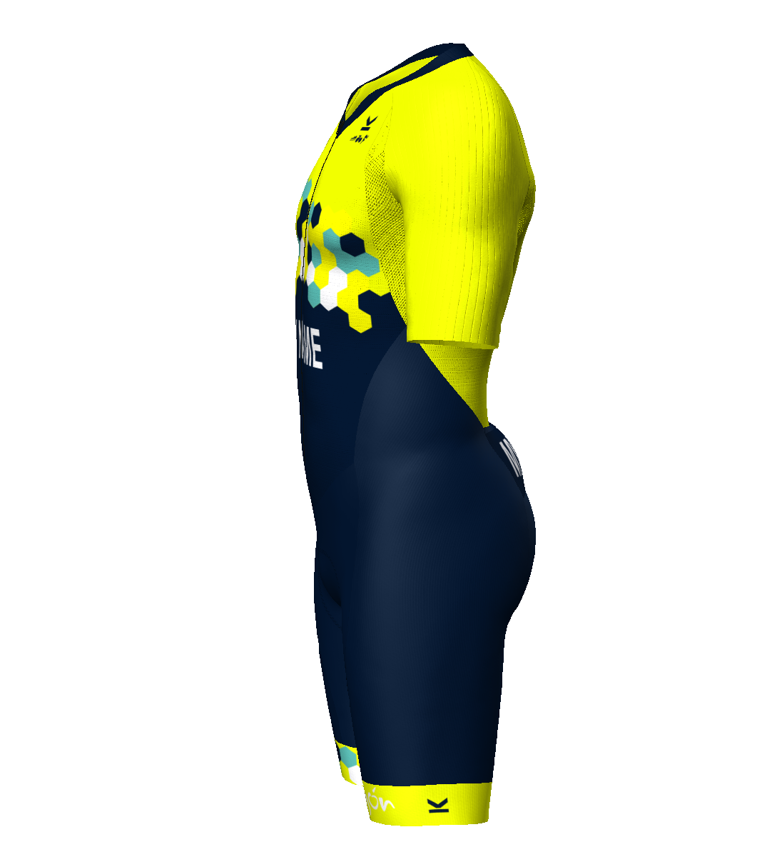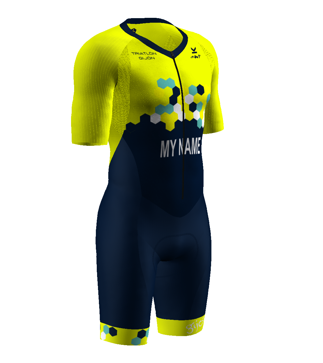 - Patronaje adaptado a los movimientos del pedaleo y carrera a pie gracias a una acentuada precurva en la zona de unión entre pierna y glúteo.