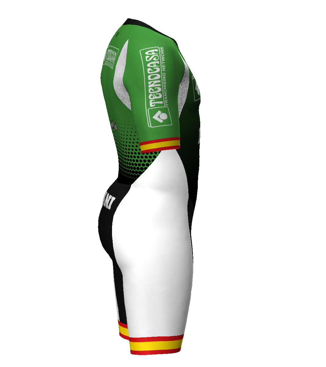 - Patronaje adaptado a los movimientos del pedaleo y carrera a pie gracias a una acentuada precurva en la zona de unión entre pierna y glúteo.