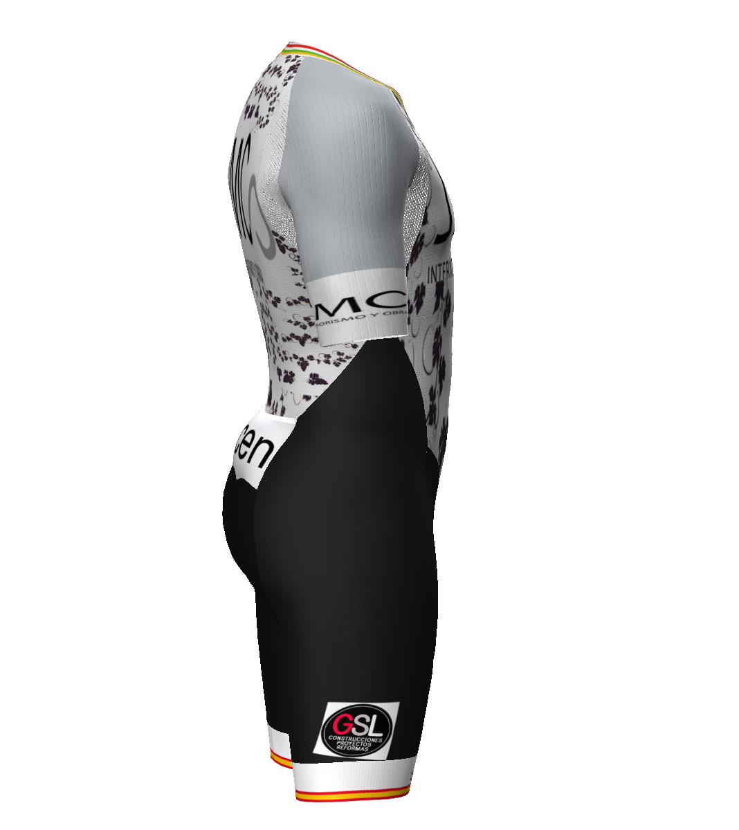 - Patronaje adaptado a los movimientos del pedaleo y carrera a pie gracias a una acentuada precurva en la zona de unión entre pierna y glúteo.