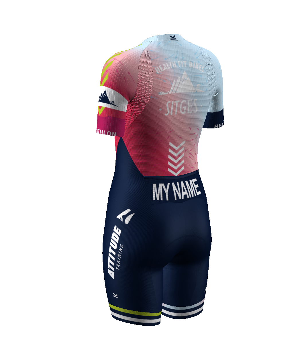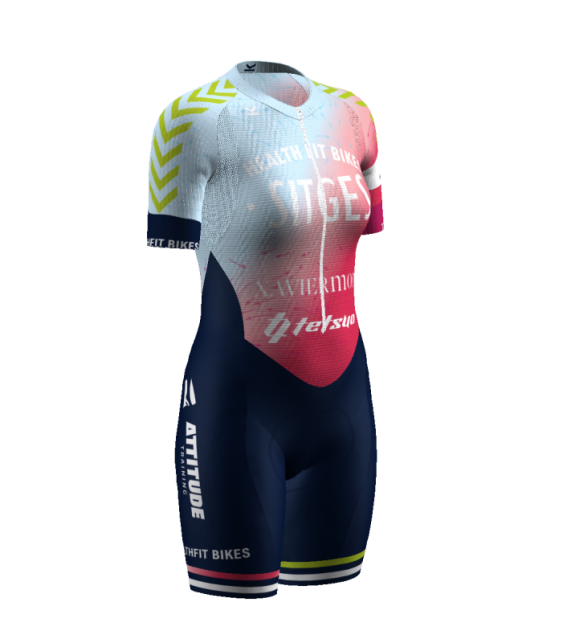 - Patronaje adaptado a los movimientos del pedaleo y carrera a pie gracias a una acentuada precurva en la zona de unión entre pierna y glúteo.