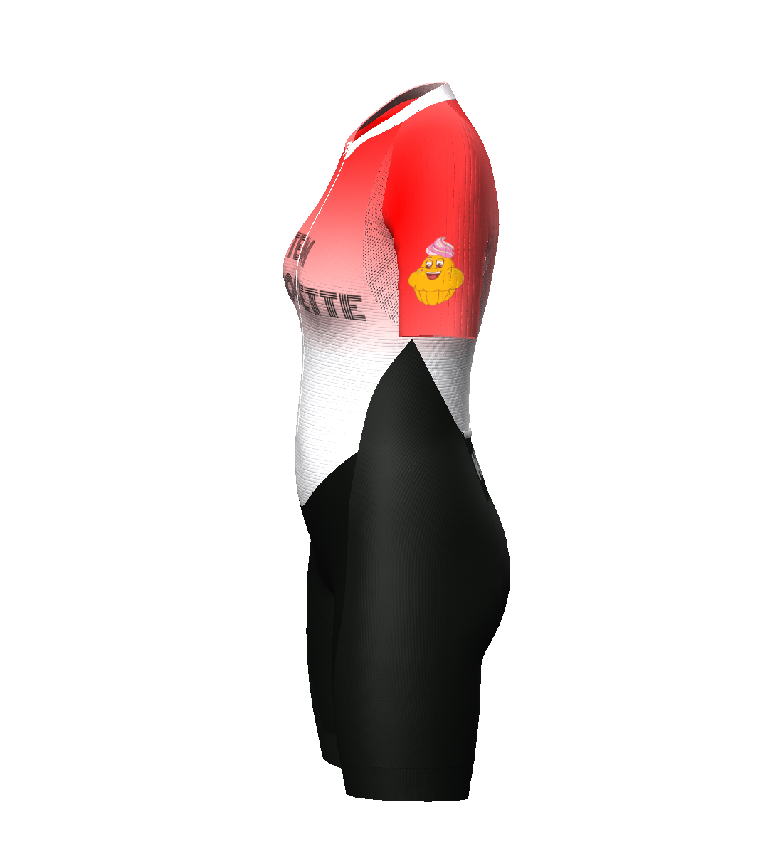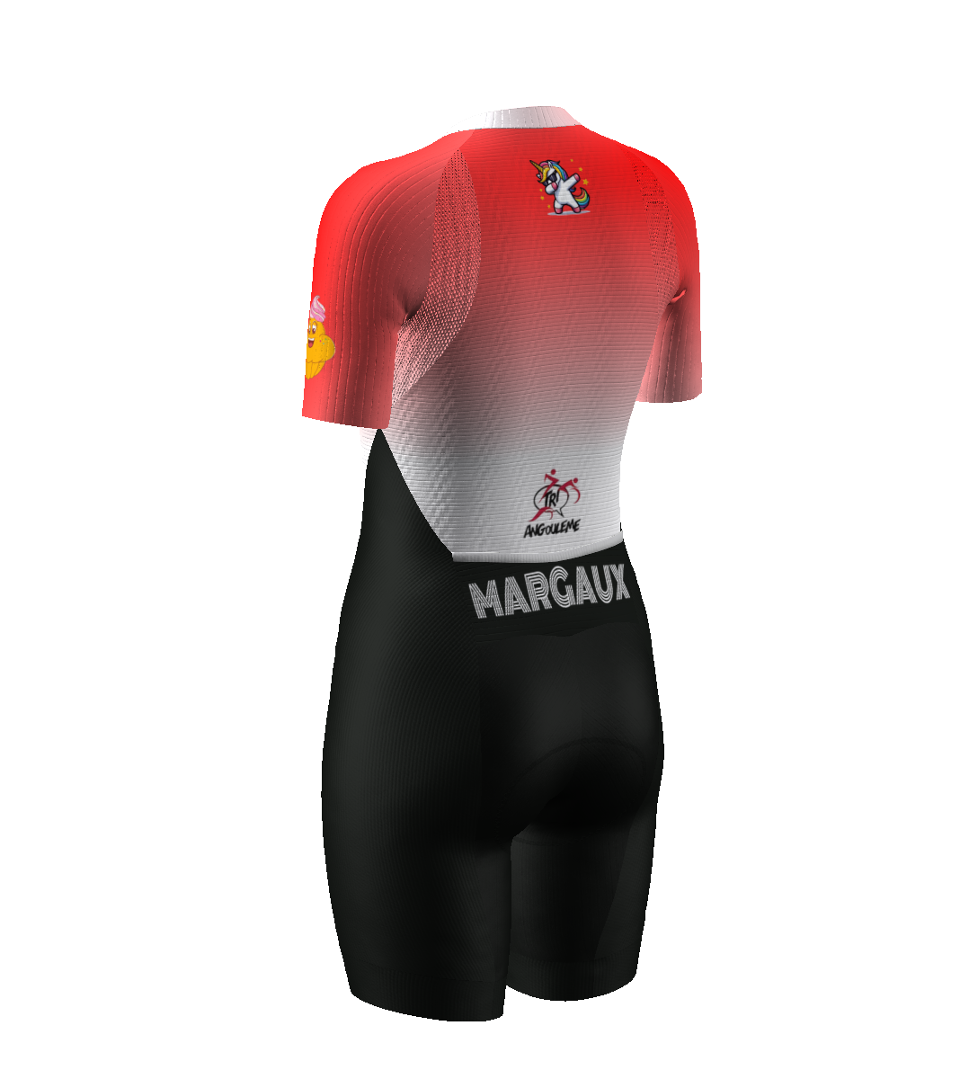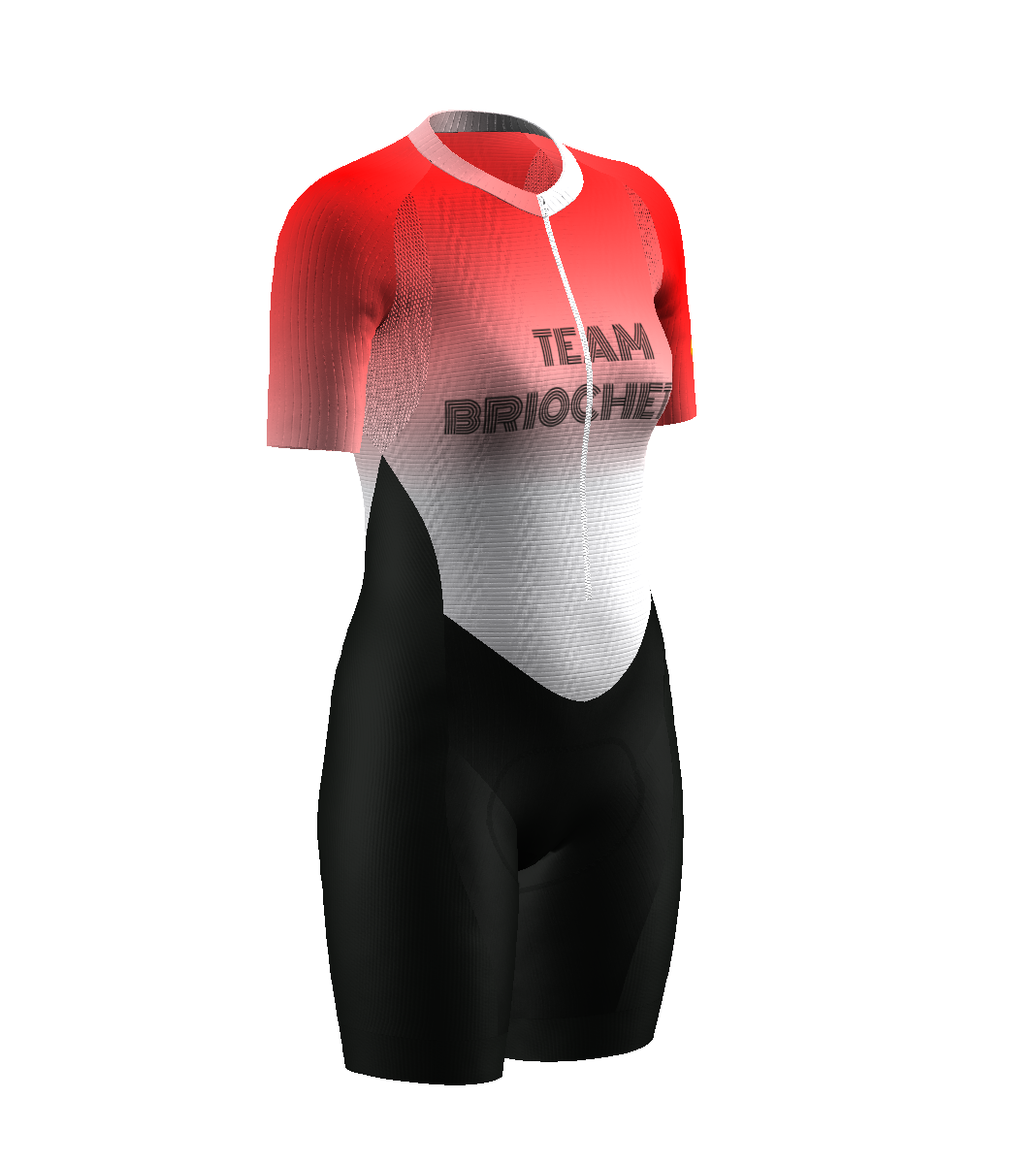 - Patronaje adaptado a los movimientos del pedaleo y carrera a pie gracias a una acentuada precurva en la zona de unión entre pierna y glúteo.