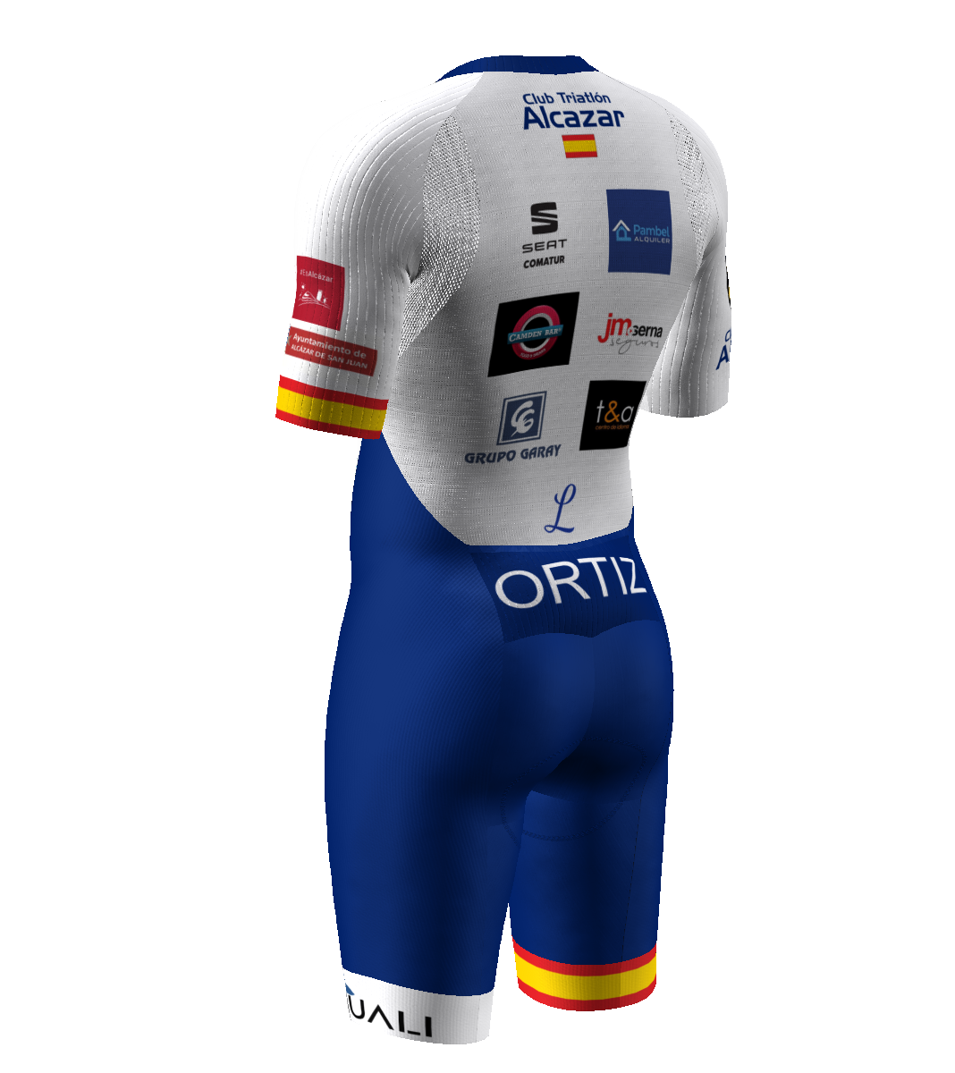 - Patronaje adaptado a los movimientos del pedaleo y carrera a pie gracias a una acentuada precurva en la zona de unión entre pierna y glúteo.