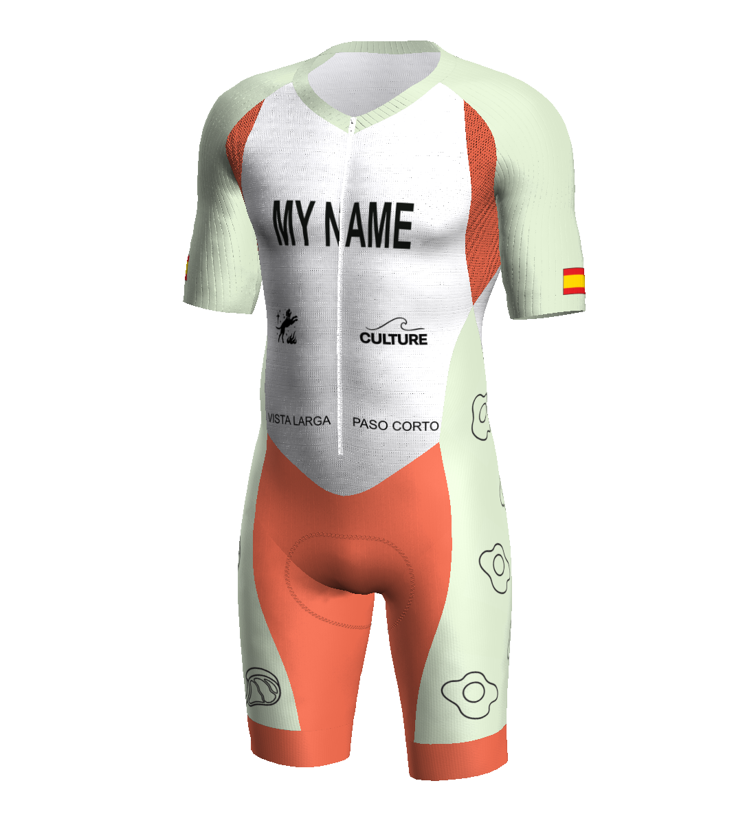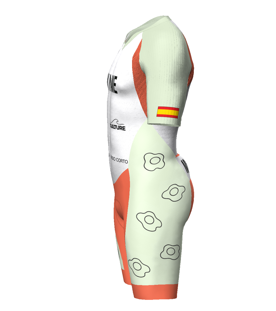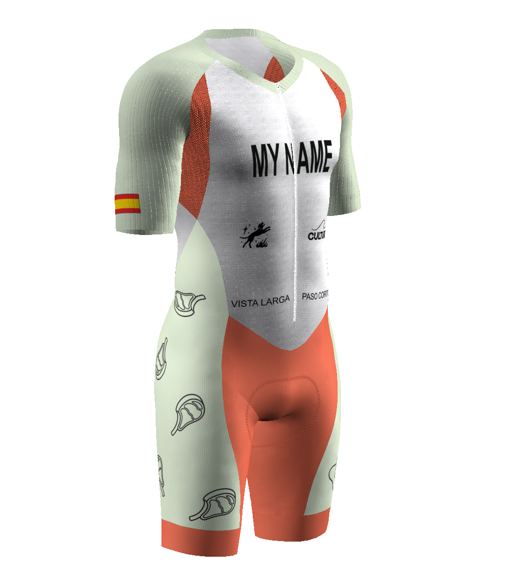 - Patronaje adaptado a los movimientos del pedaleo y carrera a pie gracias a una acentuada precurva en la zona de unión entre pierna y glúteo.