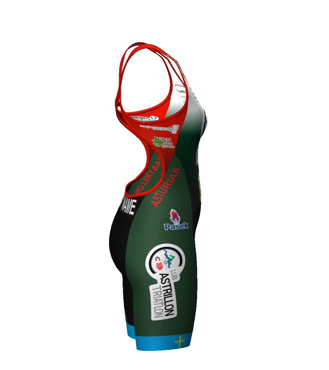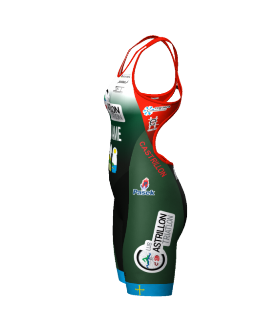 - IBS. Patronaje adaptado a los movimientos del pedaleo y carrera a pie gracias a una acentuada precurva en la zona de unión entre pierna y glúteo, además de un aislamiento funcional de ambos glúteos.