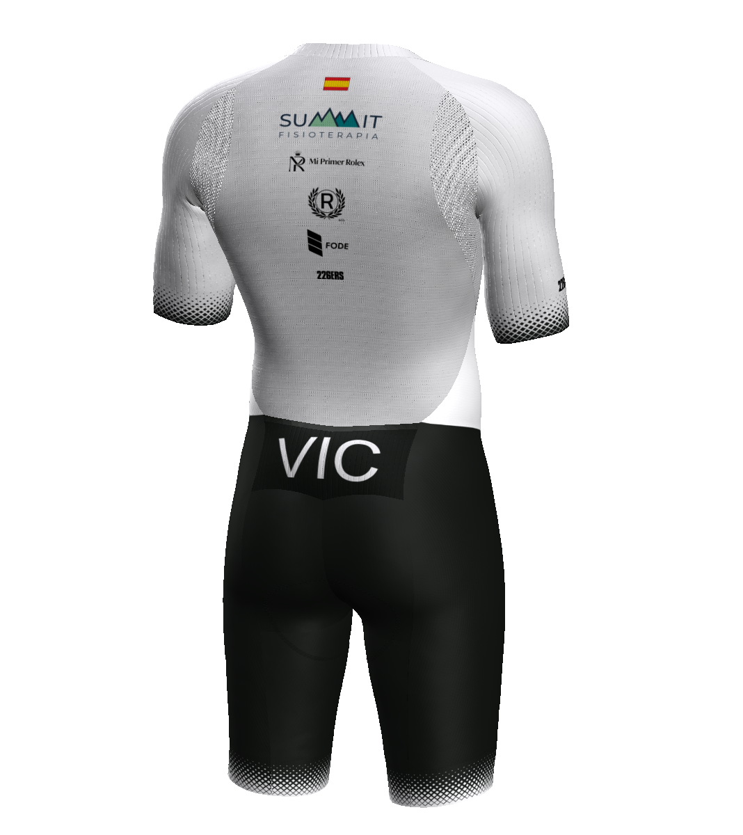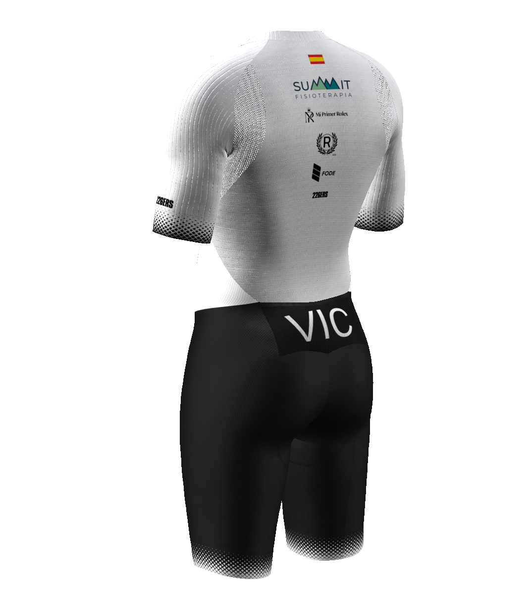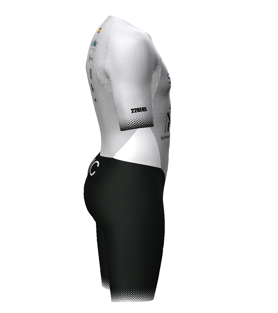- Patronaje adaptado a los movimientos del pedaleo y carrera a pie gracias a una acentuada precurva en la zona de unión entre pierna y glúteo.