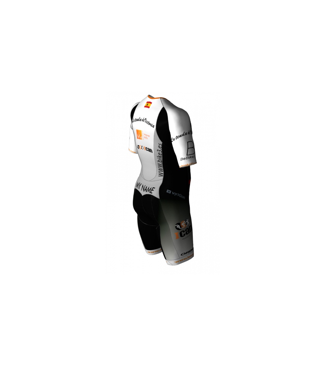 - Patronaje adaptado a los movimientos del pedaleo y carrera a pie gracias a una acentuada precurva en la zona de unión entre pierna y glúteo.